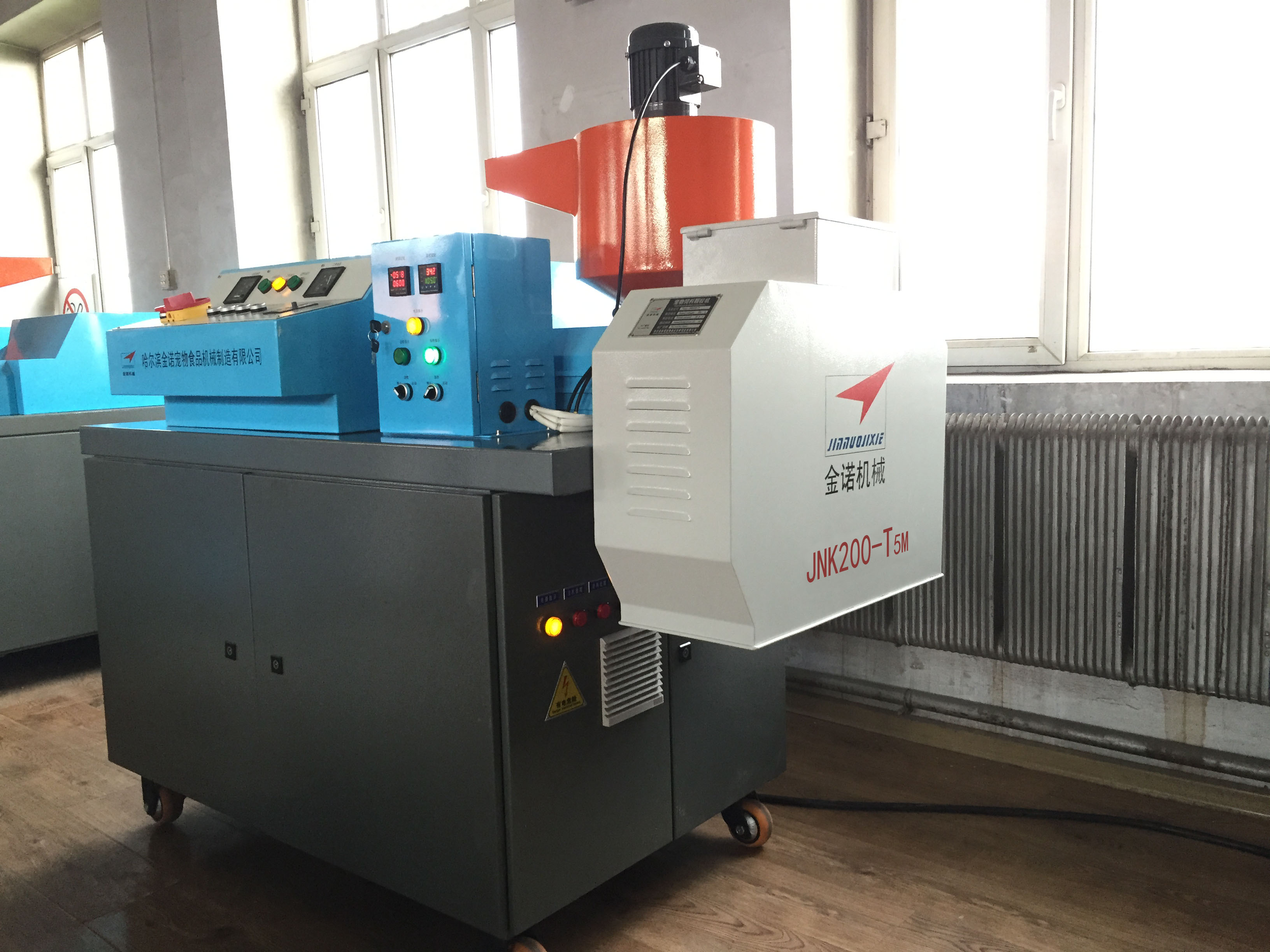 狗糧加工設(shè)備JNK200-T5M:1。JNK200-T5M型狗糧加工設(shè)備安裝方便、出廠已經(jīng)試機,狗糧機切刀采用直角切刀技術(shù),調(diào)試簡單;2。狗糧設(shè)備的主軸和切刀小軸均可隨時注入耐高溫潤滑脂,延長狗糧機的軸承使用壽命;3。JNK200-T5M狗糧設(shè)備每小時生產(chǎn)狗糧顆粒200公斤。